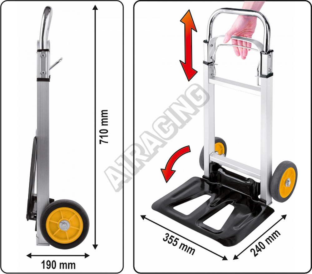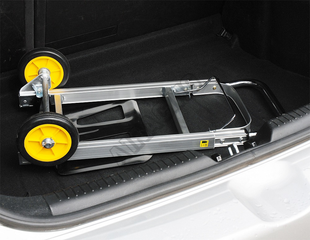 Díky jedinečnému mechanizmu je složení či rozložení vozíku možné pomocí jediného pohybu. Teleskopický úchyt s uzamykacím systémem, který je v rozloženém stavu vysoký 1,08 metru, značně usnadňuje dopravu nákladu bez nadměrného úsilí. Kolečka o průměru 150 mm jsou odolné proti oděru.