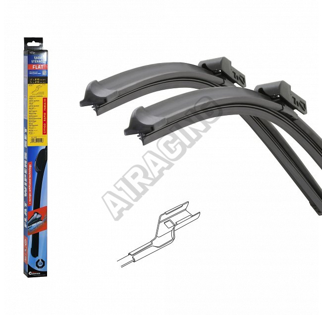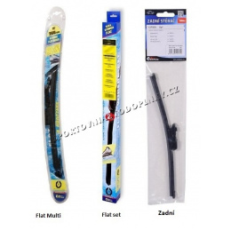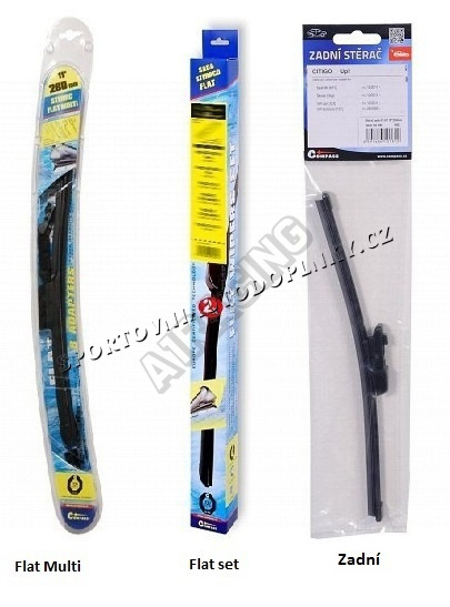 Stěrače FLAT SET (sada 2 ks na celé auto). Vysoce kvalitní pružný člen plochého stěrače zajišťuje stejnoměrný tlak grafitového břitu v celé jeho délce, což zamezuje rozmazávání nečistot a vytváření pruhů.