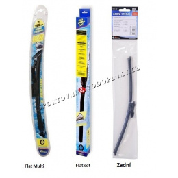 Stierače FLAT SET (sada 2 ks na celé auto). Vysoko kvalitný pružný člen plochého stierača zaisťuje rovnomerný tlak grafitového britu v celej jeho dĺžke, čo zamedzuje rozmazávaniu nečistôt a vytváraniu pruhov.