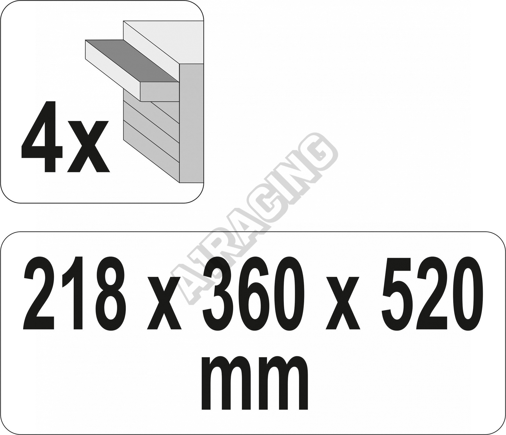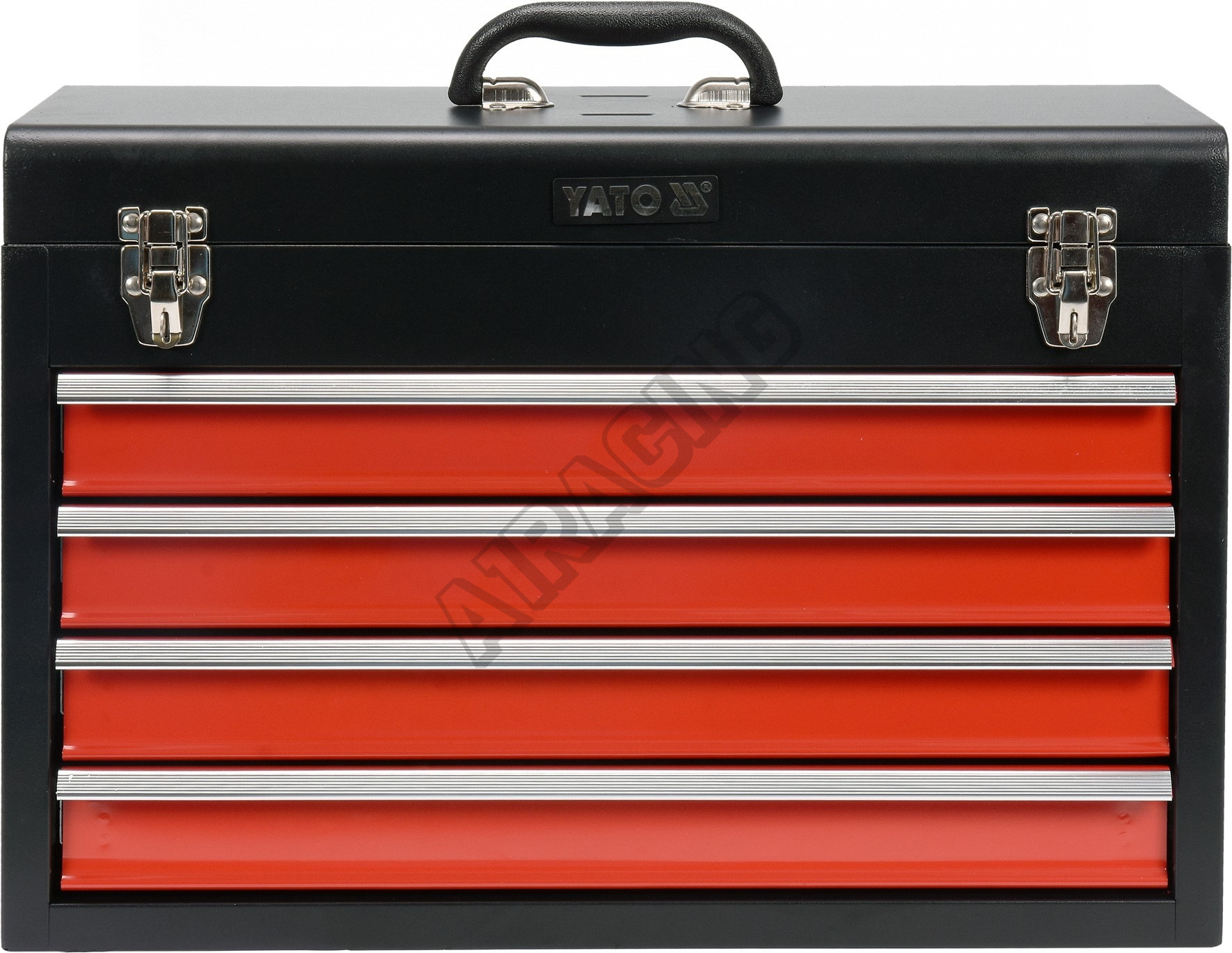 Celokovová skříňka na nářadí s vrchním úložným prostorem a 4x zásuvkami.Skříň má rozměry 520 x 360 x