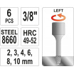 Zhotovení sady z kvalitní oceli 8660 s tvrdostí 49-52 HRC. Sada je přehledně uspořádána v plastovém kufříku.