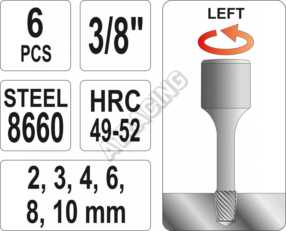 Souprava na demontáž závrtných šroubů 6 ks 3/8