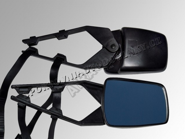 • Použitie: pravé a ľavé bočné zrkadlo pre obytné prívesy a vhodné pre všetky štandardné zrkadlá • Materiál: plast / gumičky • Rozmery (š xv): 37 x 12 cm • Montáž: gumovým pásom a háčikmi • Farba: čierna • zrkadlá sú nastaviteľné • Zrkadlá nevibrujú a neoslňujú • E-homologácia