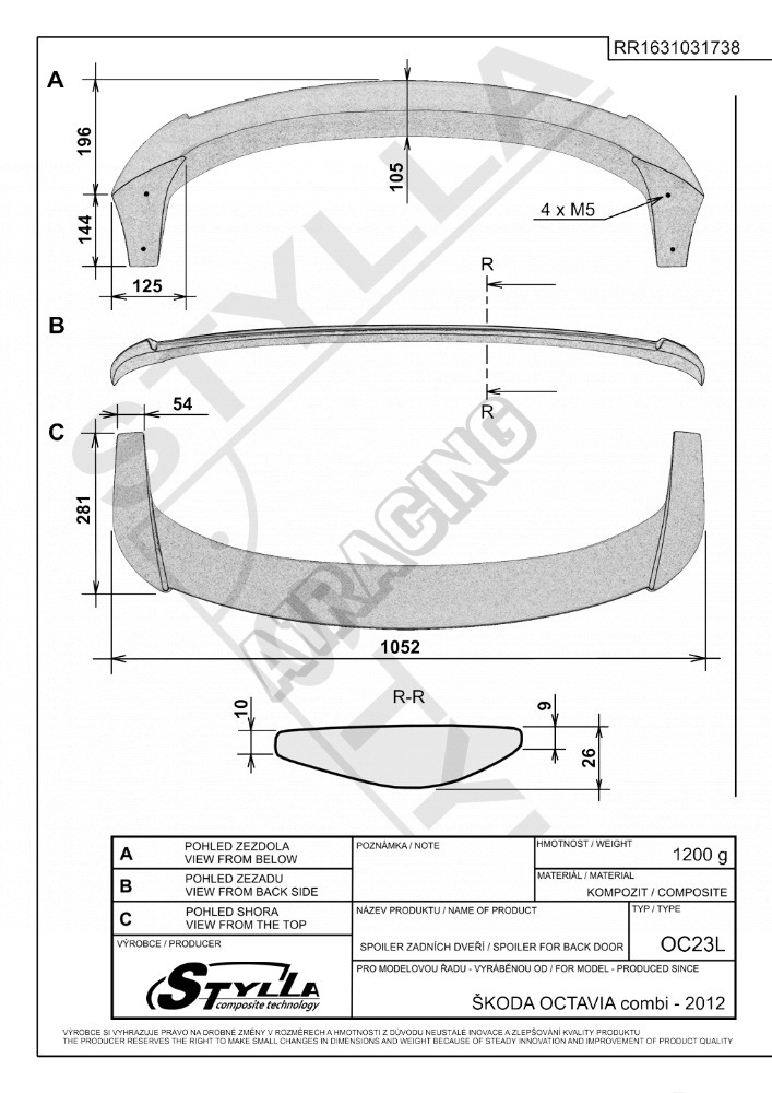Spoiler zadných dverí horný Škoda Octavia III combi (EÚ homologácia)