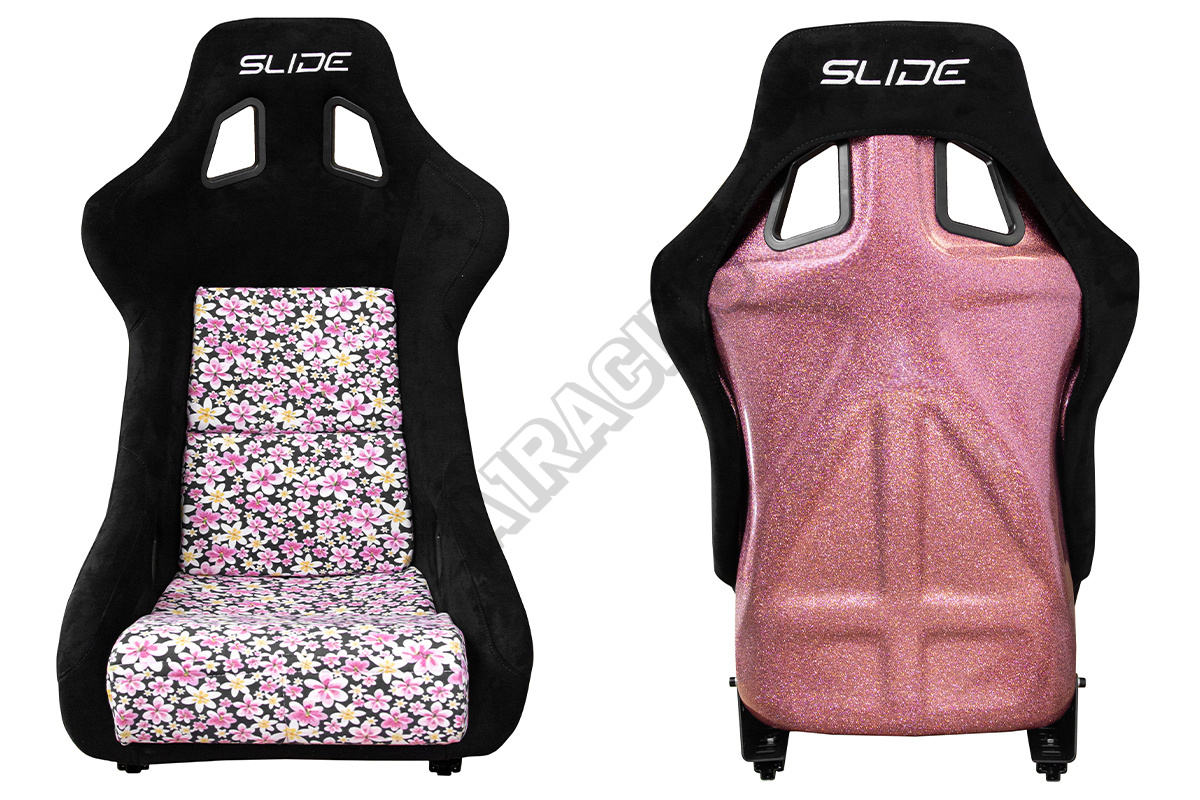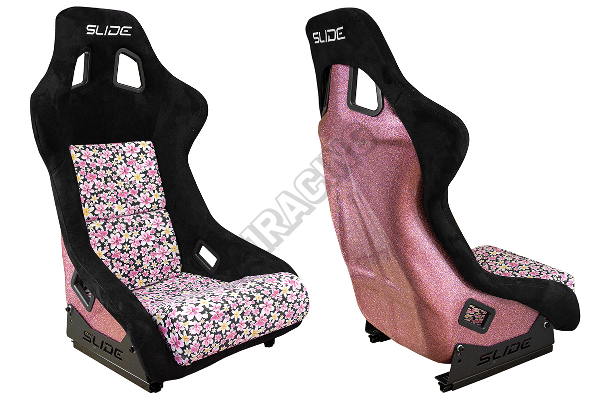 Športové kreslo SLIDE KS2 Premium Black & Flowers Velur Light Pink Glitter