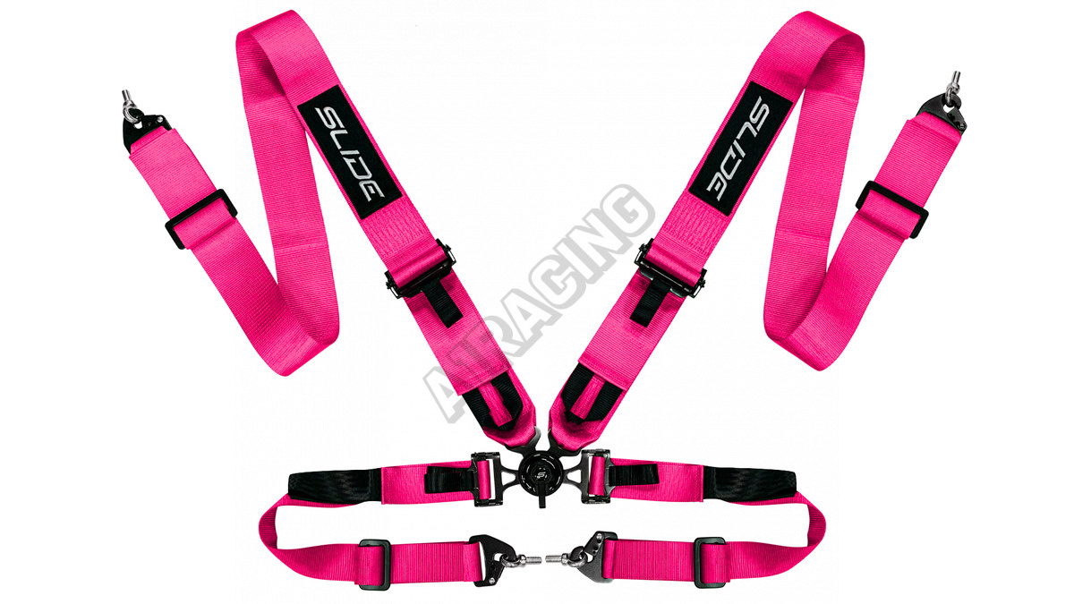 Športové bezpečnostné pásy SLIDE 4-bodové, vyrobené z tkaniny a čiastočne z plastu.