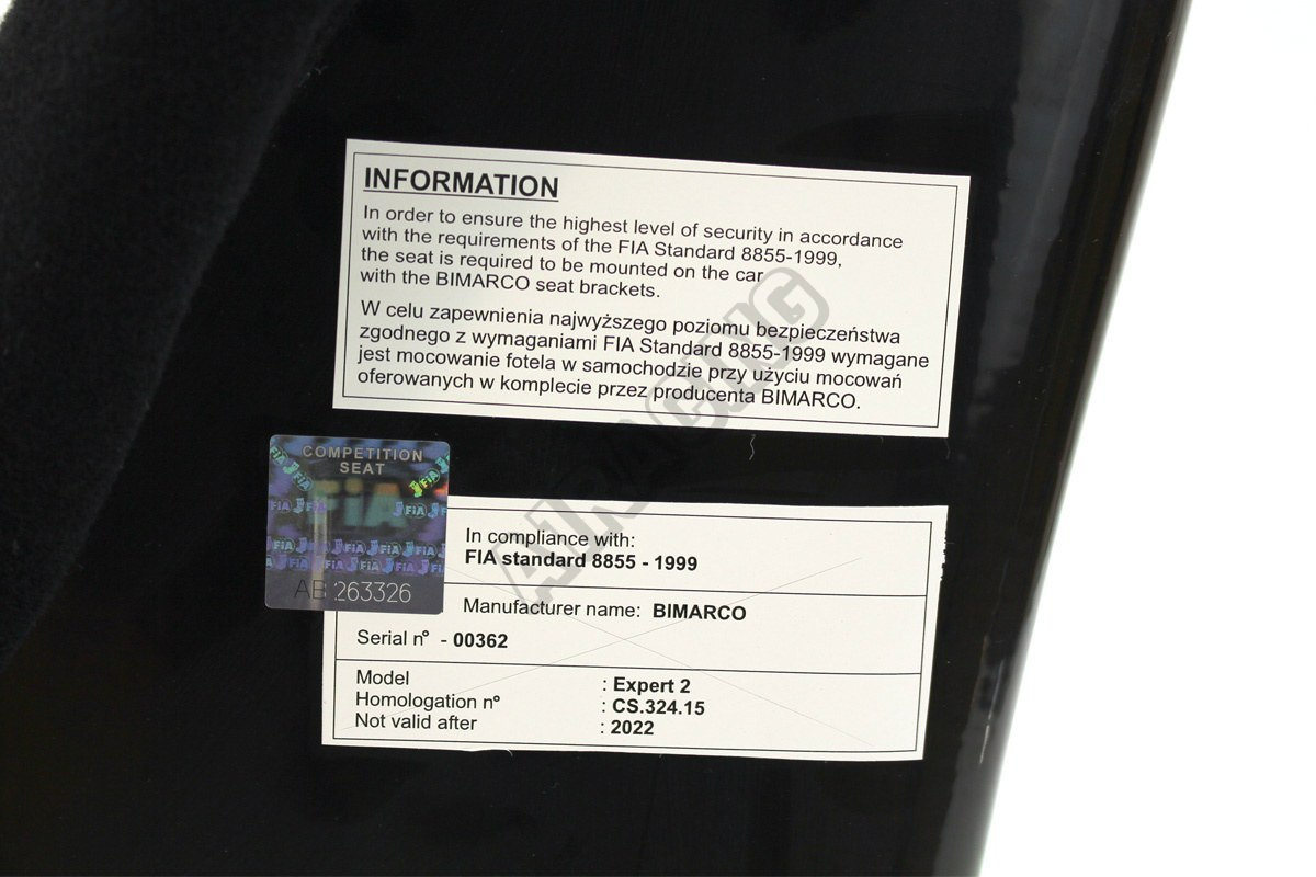 Kvalitní sportovní sedačka firmy Bimarco. Tento výrobce patří mezi přední evropské výrobce sedaček, které jsou hlavně cenově dostupné pro hoby i amatérském motorsportu, kde už mají i FIA závodní homologaci.