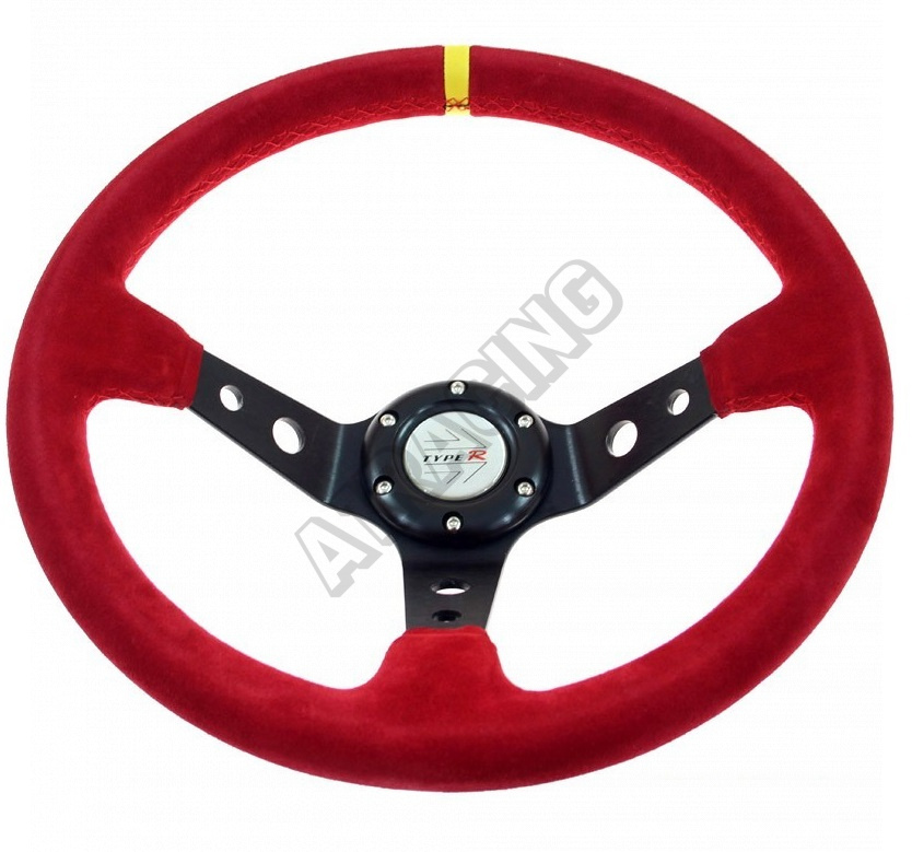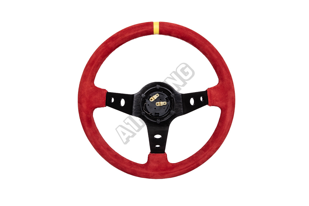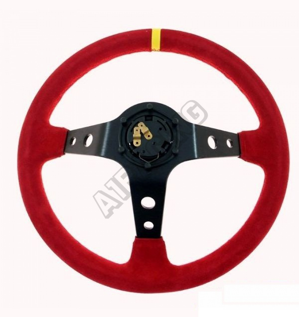 Športový volant WRC Rally II červený 350 mm Výška věnce od středu 8 cm, průměr volantu 350 mm, šířka