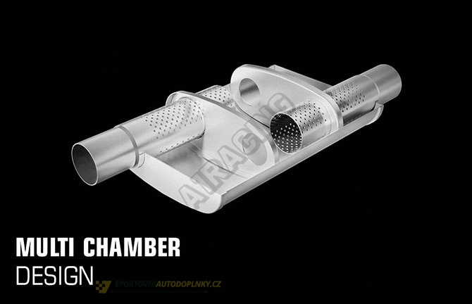 Sportovní výfuk Magnaflow Turbo XL má vařené švy pro maximální odolnost a výkon klidně i 500 koní, otevřená konstrukce pro navýšení výkonu, velký vnitřní perforovaný průměr potrubí a strategicky umístěné zvukové přepážky snižují nežádoucí rezonance, výfuk není přímo průchozí, zvuková kulisa není extrémě silná, důmyslnou perforací projde část laděných vln, které se odráží od zadní stěny tlumiče a ruší nežádoucí tvrdší zvuky, je zde velmi dobrá rovnováha v navýšení výkonu a potlačení extrémní zvukové kulisy, výfuk je určen jak pro silná osobní auta, tak SUV a teréní auta, kde je často výfuk před zadní nápravou.