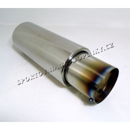Rozměry : celková délka 45 cm, délka koncovky 9 cm, průměr koncovky 10 cm, šířka těla výfuku 13 cm, průměr vstupu pro navaření 6 cm (vnější průměr)