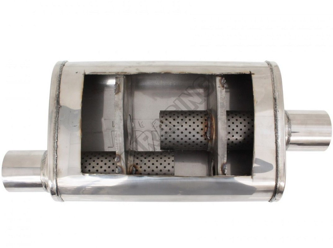 Tento nerez sportovní výfuk se dá velmi dobře použít jako střední i zadní díl. Kde se nejedná o čistě průchozí konstrukci, ale zvuk je z části utlumen středovou komorou, kde výfukové potrubí je rozděleno vedle sebe a tím dochází ke snížení hlučnosti, při zachování decentního sportovního zvuku.