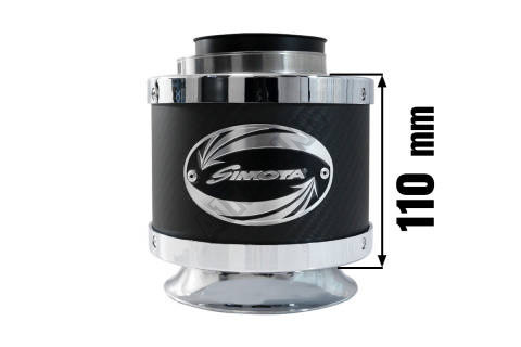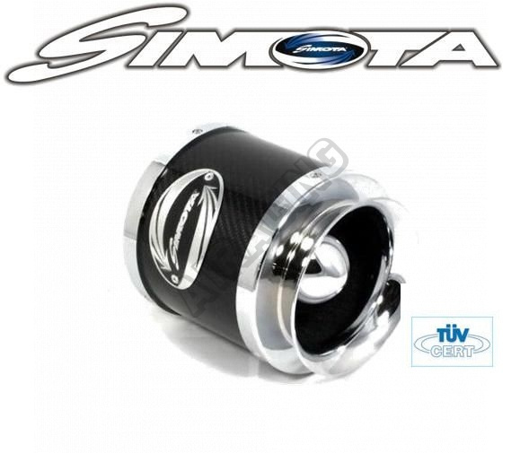 Sportovní vzduchový filtr SIMOTA je vyroben ze 100% pravých uhlíkových vláken. Zlepšuje proudění vzduchu, způsobuje zvýšení výkonu a točivého momentu až o 5%, zlepšuje pružnost motoru, snižuje spotřebu paliva. Vyznačuje se dlouhou životností. Filtr můžete udržovat speciální čistící sadou a tím lze použít opakovaně. Instalace na sponu je velmi jednoduchá, rozměry: šířka 130 x výška 155 x průměr vstupu 60, 65, 70, 77 mm.