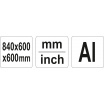 Stavařský skládací úhelník o rozměrech paží 600 x 840 x 600 mm s tloušťkou 3,5 mm.