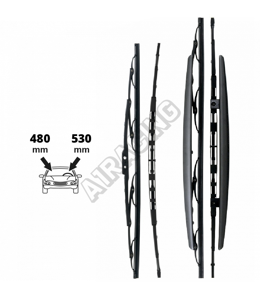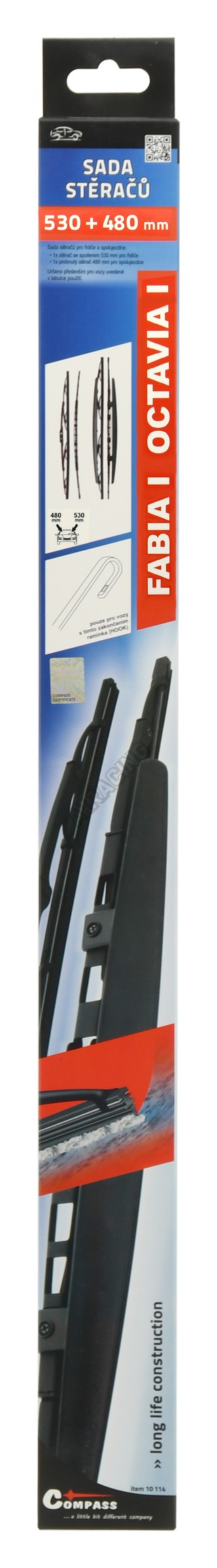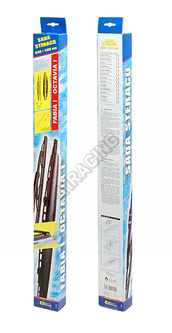 Sada dvou stěračů (řidič + spolujezdec) rozdílných délek, optimalizovaná pro nejběžněji používanou kombinaci velikostí stěračů. Stěrač určený k montáži před řidičem se spoilerem. Stěrač určený k montáži před spolujezdcem je prohnutý. Zajišťuje dokonalé stírání i na zakřivené části skla na straně spolujezdce. Kvalitní vícevahadlová nýtovaná konstrukce ramena stěrače. Vhodné především pro vozy Škoda (Octavia I, Fabia I), VW, Seat, Audi a Ford (Focus). Balení obsahuje stěrač 530 mm (21") + stěrač 480 mm (19") + univerzální adaptéry pro montáž.