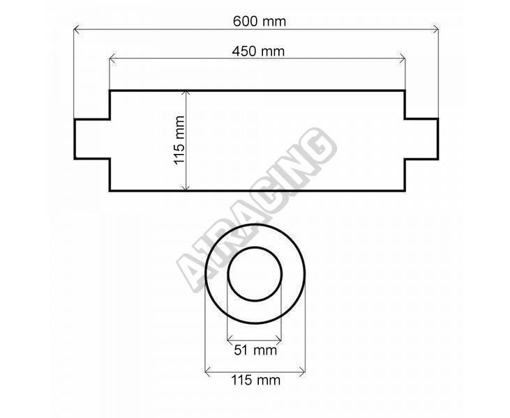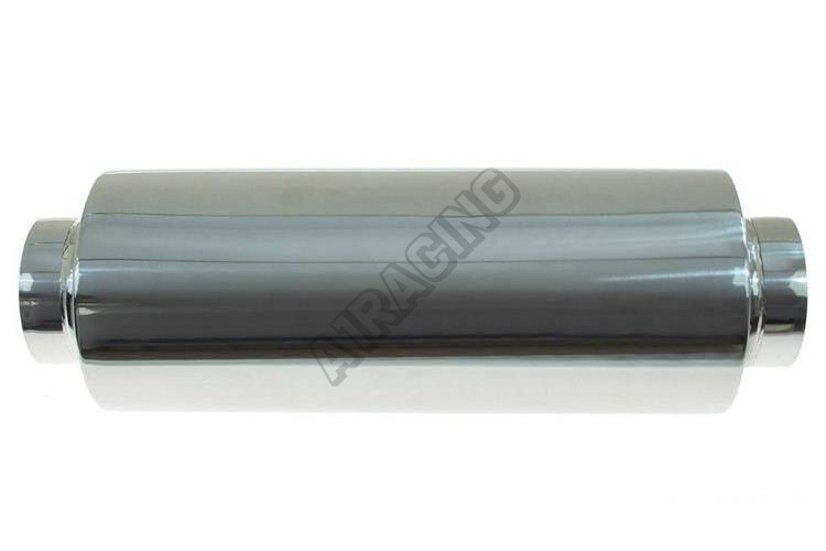 Prietokový tlmič stredový vyrobený z nehrdzavejúcej ocele 409SS.Rozmery: celková dĺžka: 600mm, dĺžka