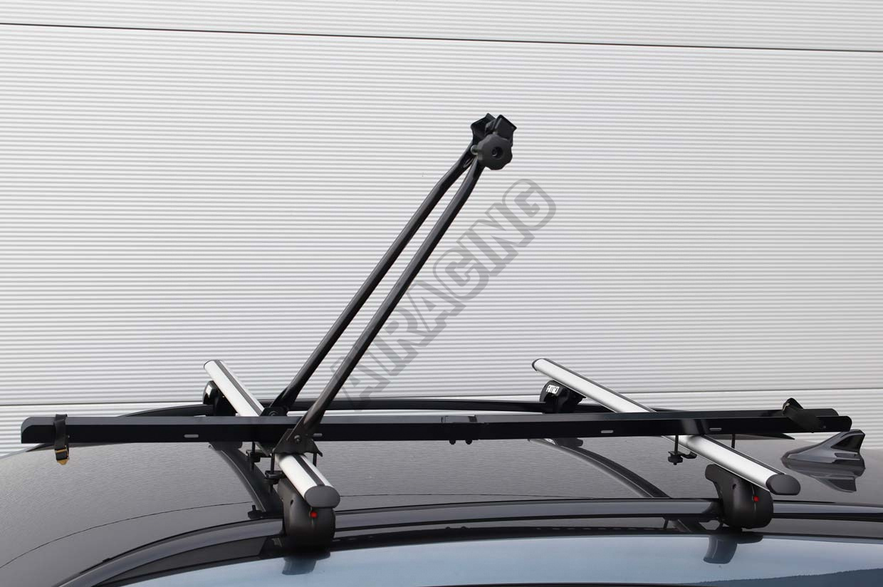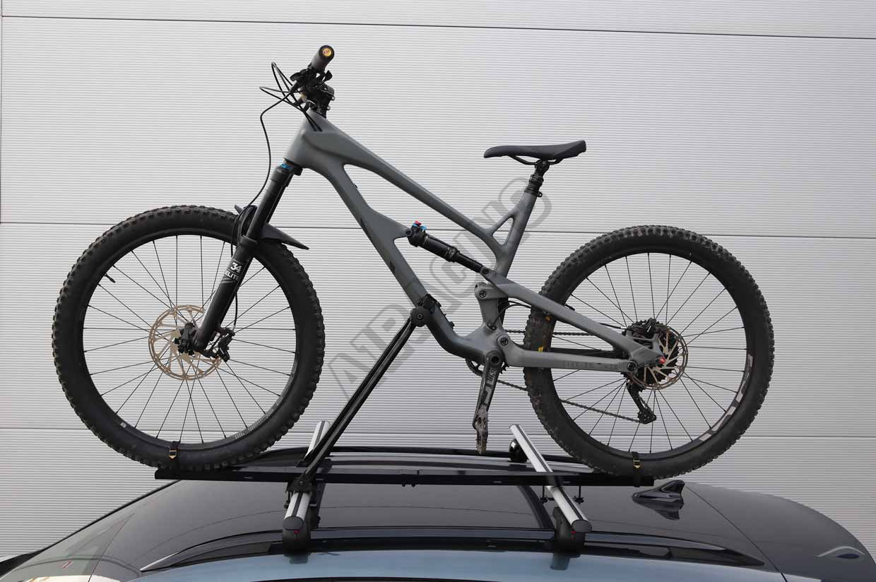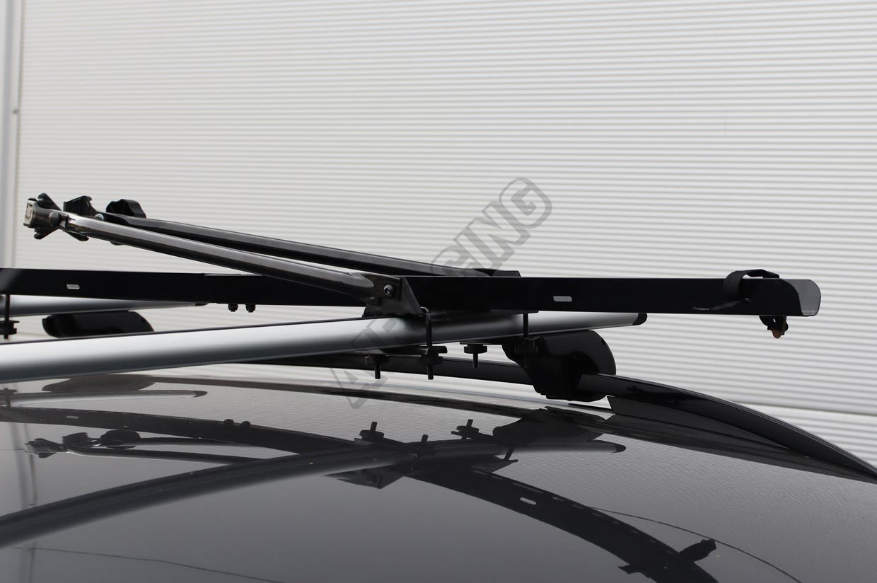 Praktický a ľahký oceľový držiak na prepravu bicyklov je určený na montáž na strešný nosič auta (priečniky).
