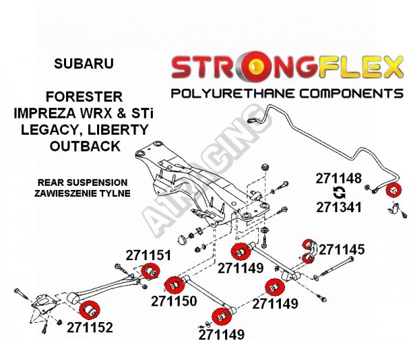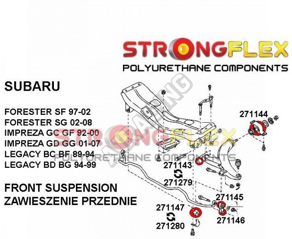 Subaru Impreza 2001+ GD GG StrongFlex Sport (tvrdost 90ShA) kompletní sestava silentbloků na celé auto obsahuje :