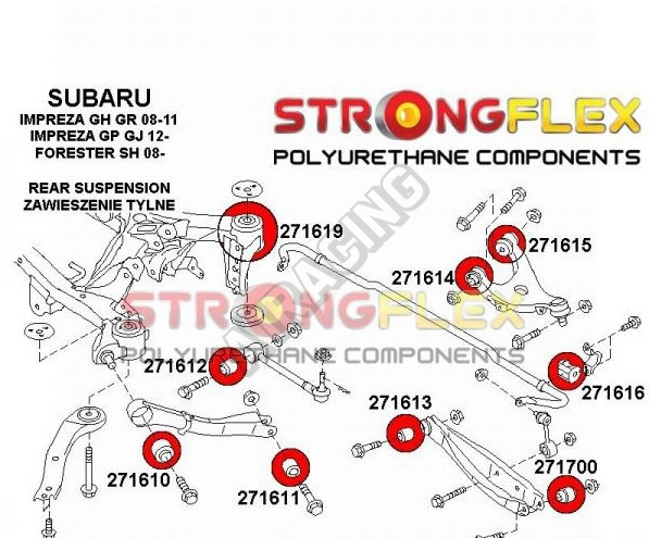 Subaru Impreza 2001+ GH GR StrongFlex Sport sestava silentbloků jen pro zadní nápravu 16 ks obsahuje: