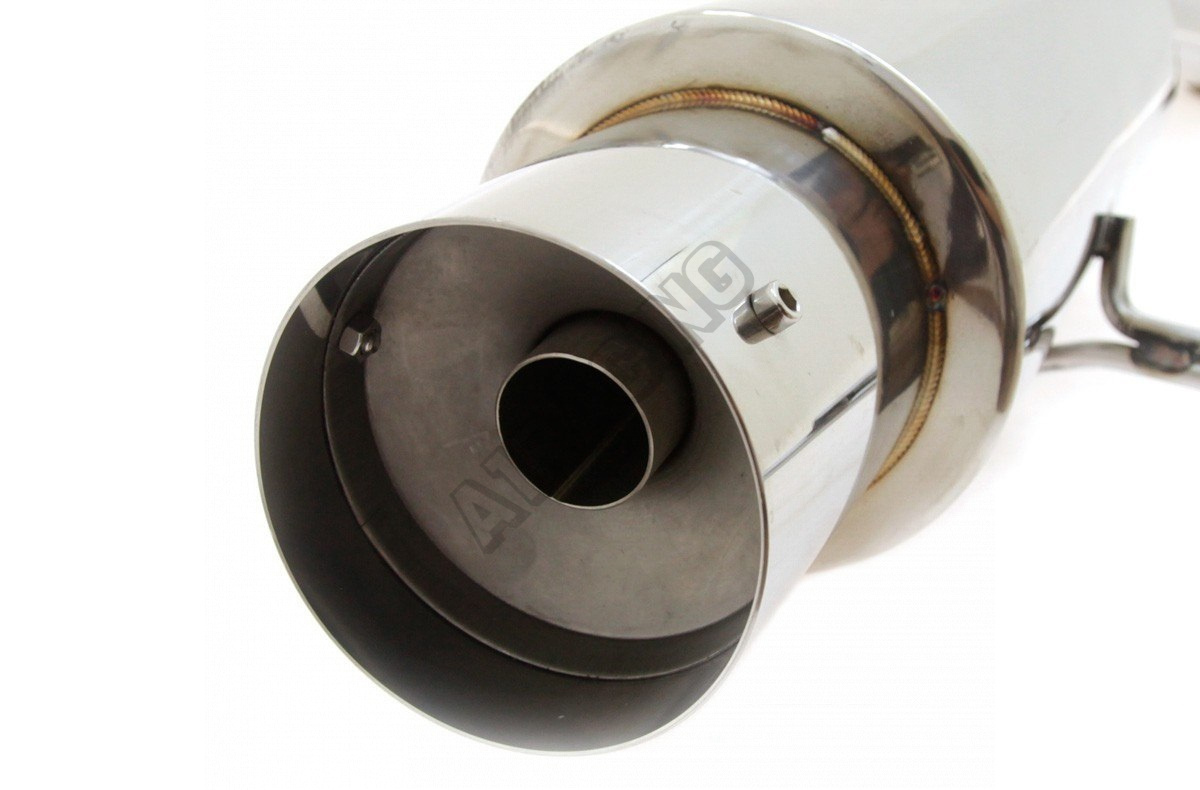 - kompletné nerez otvorené prevedenie od katalyzátora smerom dozadu (vrátane tne náhrdy katu) pre maximálne navýšenie výkonu, v zadnej časti je zvukový silencer (ak je nasadený, zvuková hladina je o 5-8 Dcb menšia), tento výfuk je asi o 1/3 ľahšia ako originálna, súčasťou balenia je všetko montážne príslušenstvo, priemer potrubia je 72 mm,