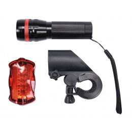 Sada LED světel na kolo. Obsahuje přední a zadní světlo s držáky.