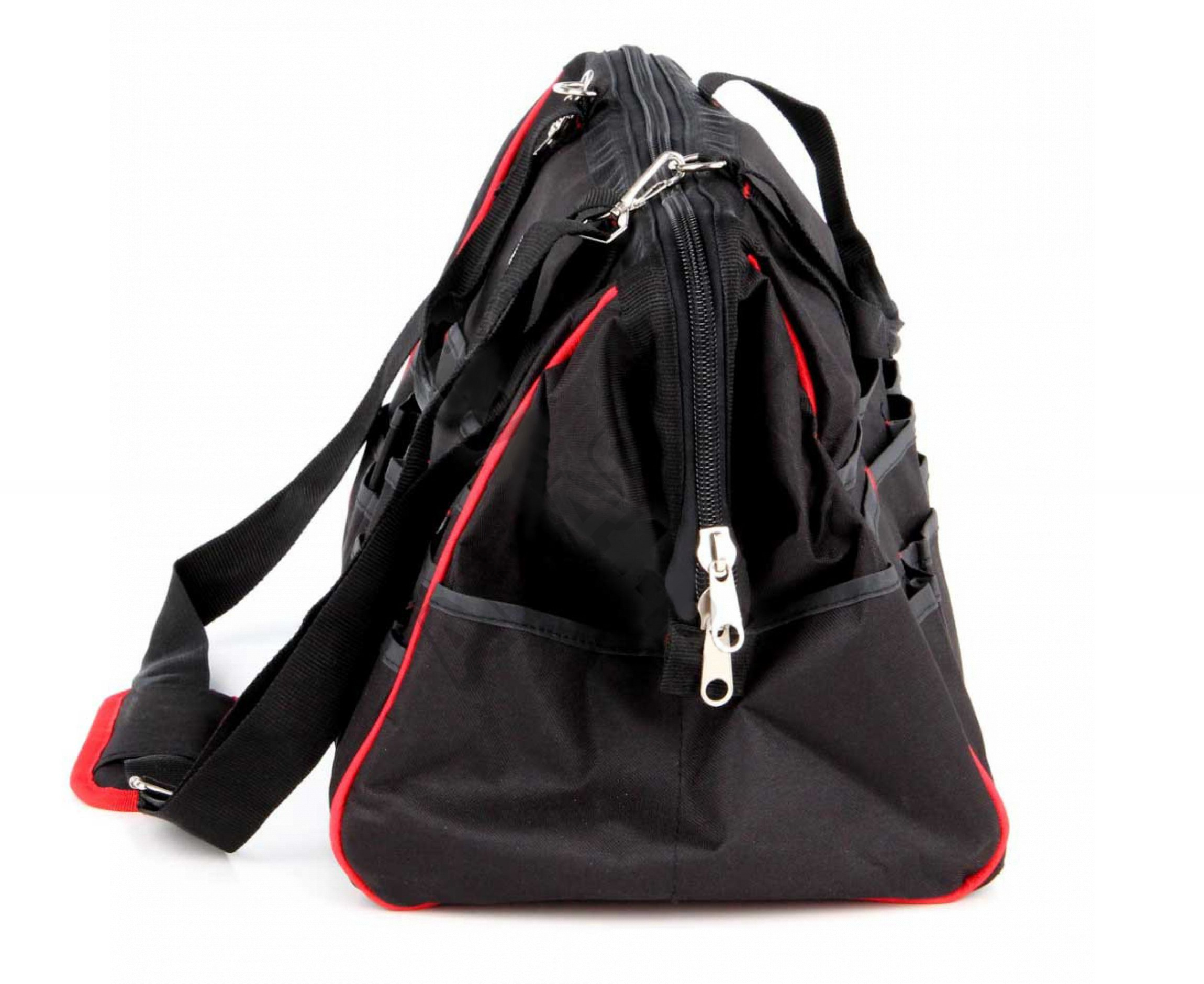 Vďaka praktickému a ľahko fungujúcemu zipsu a početným vreckám a priehradkám je taška ideálna pre mobilné služby, dielne, dom a záhradu.