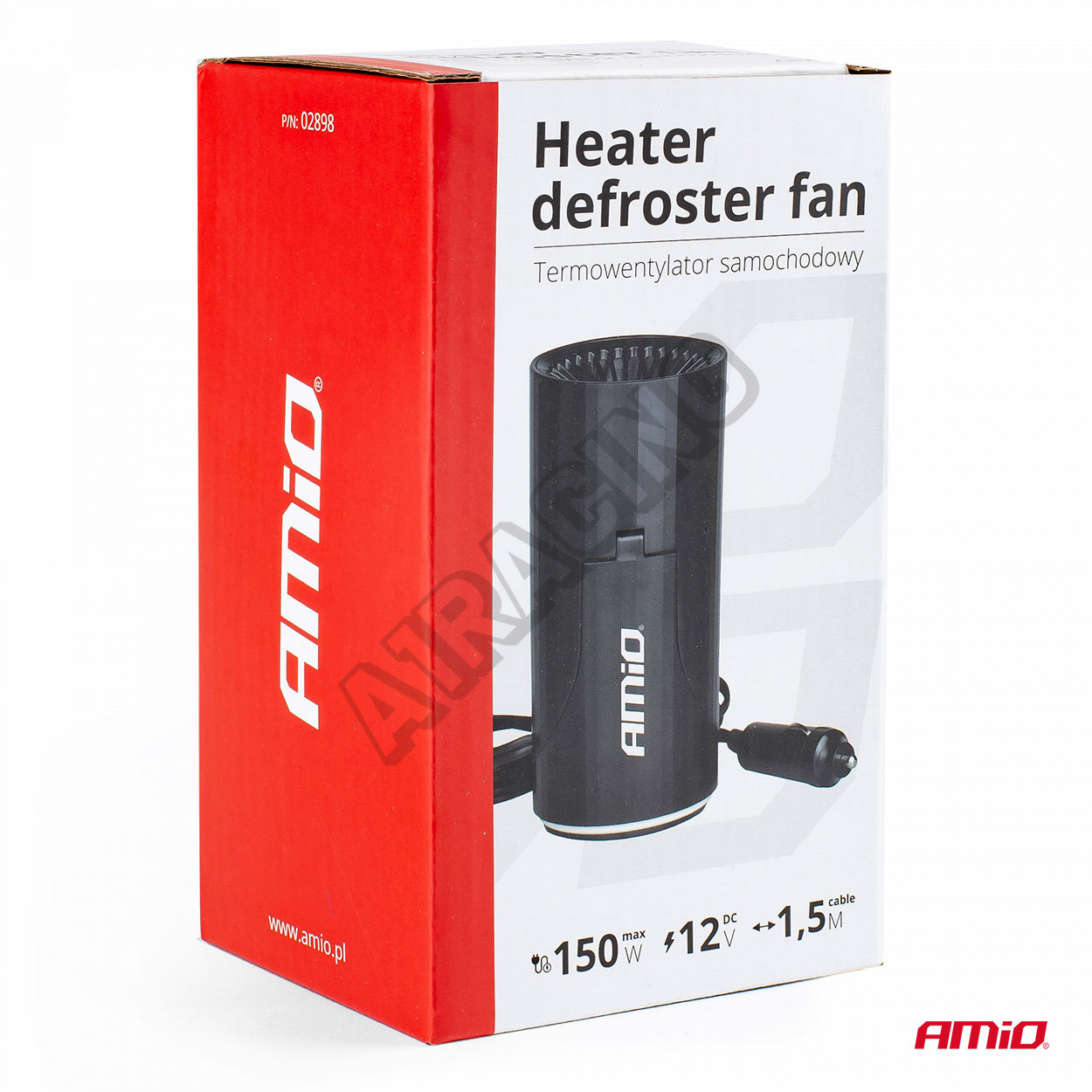 Produkt má funkciu teplého a studeného vzduchu.. Prispôsobený pre napájanie z autozapaľovača s napätím 12 V. Na výber funkcie slúži prepínač umiestnený na kryte. Regulovateľný držiak na lepiacu pásku.