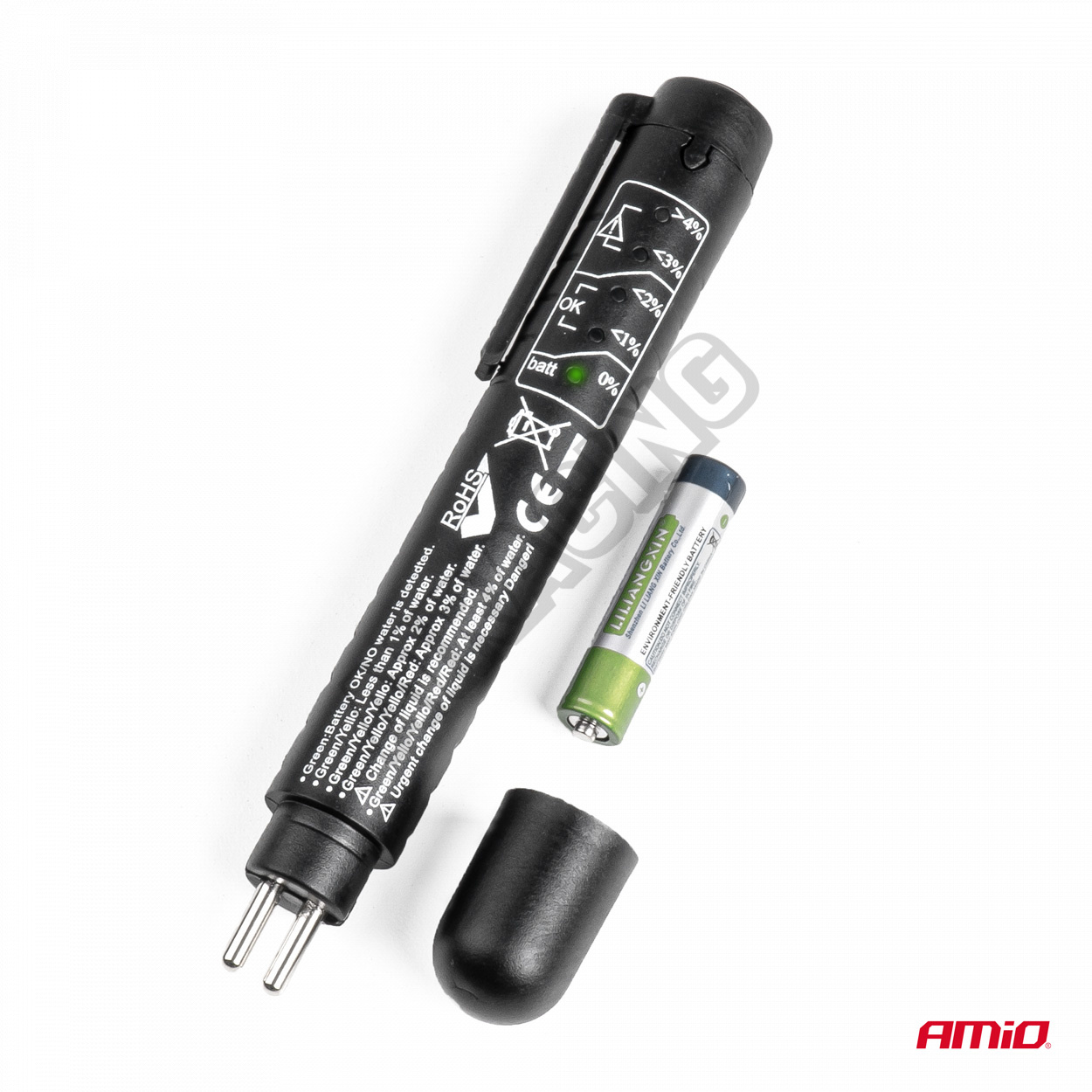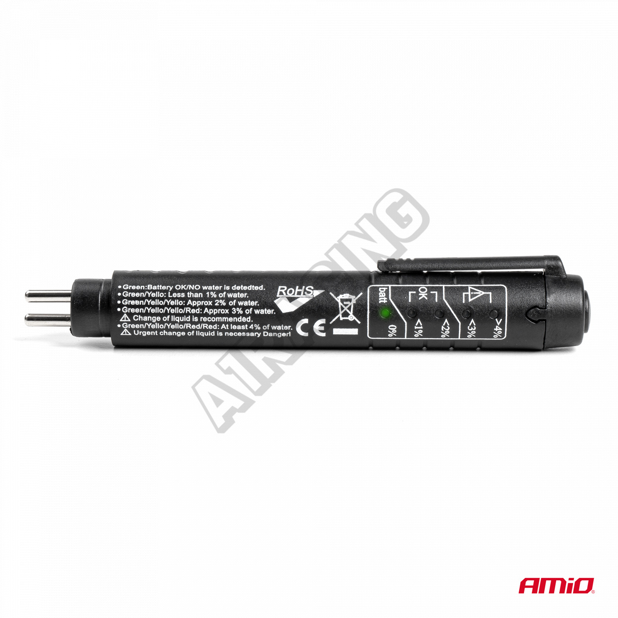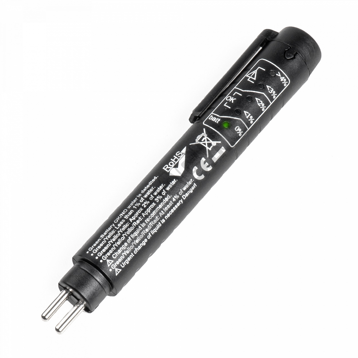 Kompaktný tester brzdovej kvapaliny. Umožňuje bleskovo zmerať obsah vody v brzdovej kvapaline, bez ohľadu na model automobilu. Stačí ponoriť elektródy testera do nádržky s brzdovou kvapalinou a odčítať indikáciu kontrolných diód. Zariadenie je schopné testovať mnoho druhov brzdových kvapalín (DOT 3, DOT 4, DOT 5, DOT 5.1).