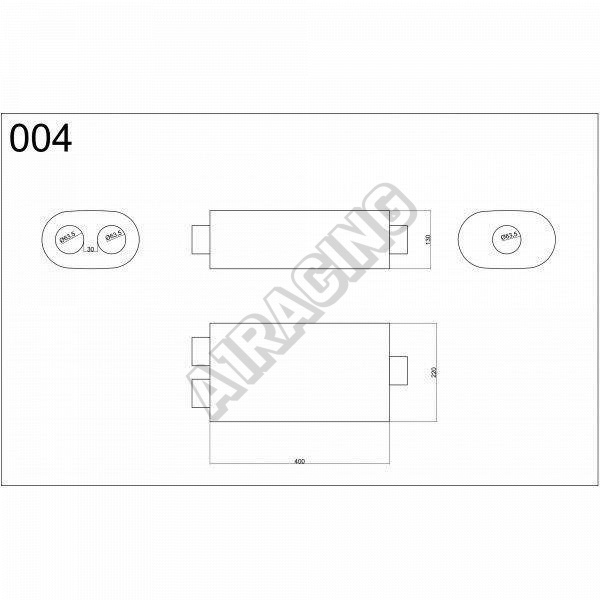 Model E004 Tlmič s priechodnou konštrukciou tlmený nehrdzavejúcou oceľovou vlnou a sklenou rohožou