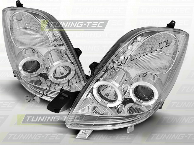 TOYOTA YARIS 2006-09 PŘEDNÍ ČÍRÁ SVĚTLA ANGEL EYES CHROME