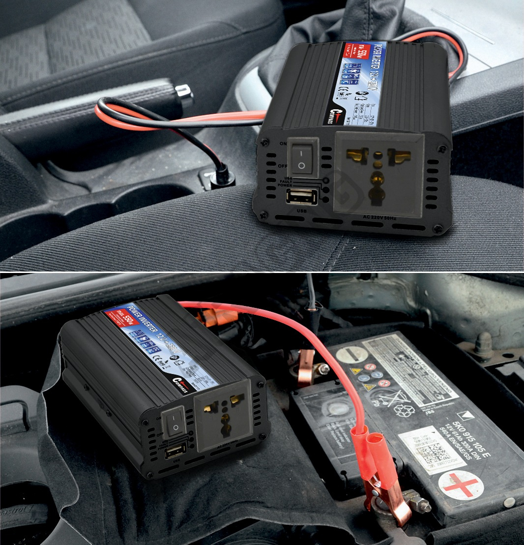 Vysoko výkonný menič, určený na univerzálne použitie, kedy je potrebné pripojiť sieťové spotrebiče určené pre 230V/50Hz v miestach s rozvodom 12 V=.