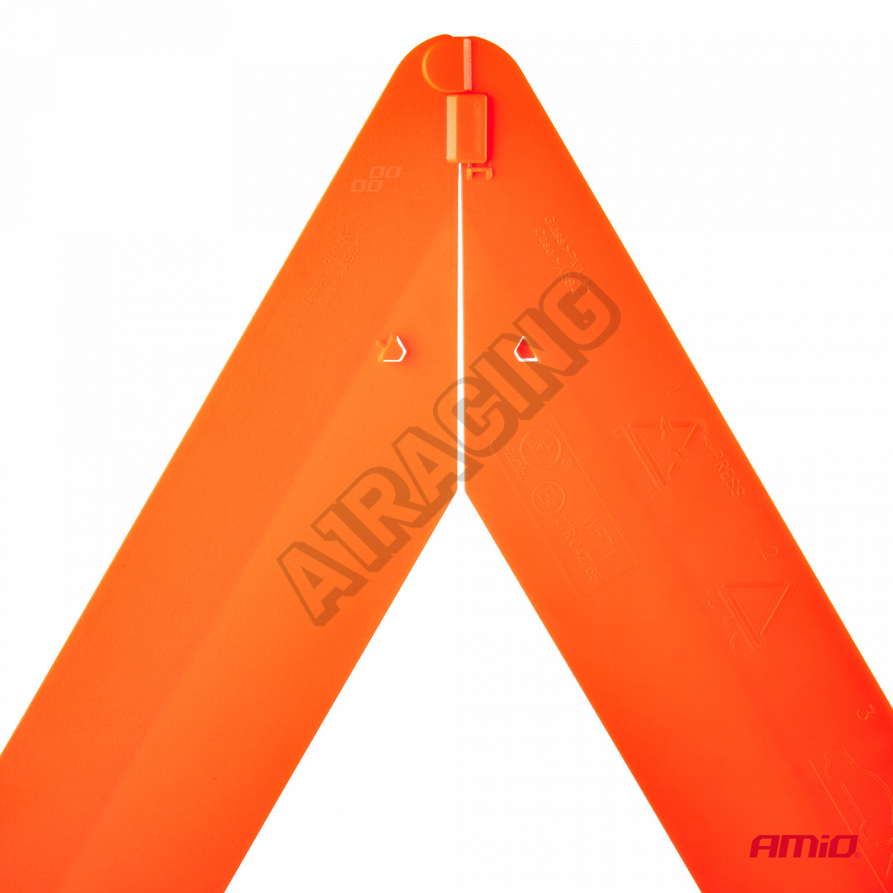 Skladací naozaj masívny výstražný trojuholník v skladnom plastovom puzdre. Homologácia E4 27R032713. Výstražný trojuholník je súčasťou povinnej výbavy automobilov.
