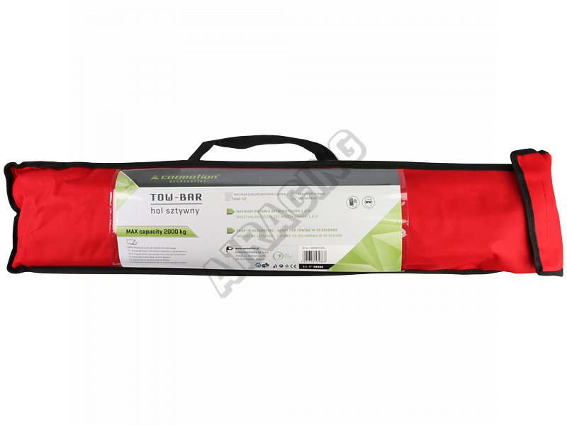 POPIS VÝROBKU Ťažné lano je určené na ťahanie vozidiel s prípustnou hmotnosťou do 2 000 kg. Maximálna vzdialenosť medzi háčiky je 1,8 m. Montáž sa vykonáva zacvaknutím. Súčasťou balenia je aj vlajka z červenej fólie, ktorá zodpovedá za lepšiu bezpečnosť pri ťahaní.