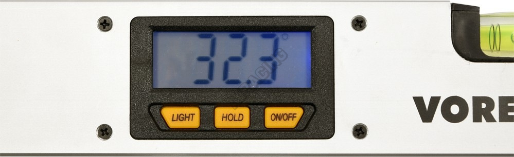 Zařízení je opatřeno funkcí Hold - pro dočasné zablokování výsledku měření a funkcí automatického vypnutí, která chrání 9V baterii před vybitím a zvyšuje tak užitnou hodnotu úhloměru.