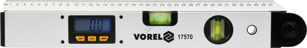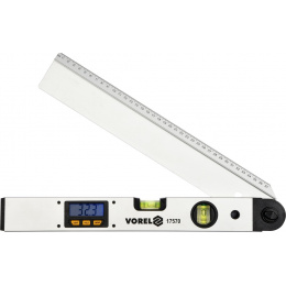Tělo úhloměru je vyrobeno z hliníkového profilu opatřeného 2x libelami. S jejich pomocí můžeme přesně odměřit libolné úhly. Pohyblivá část má délku 400 mm a je opatřena milimetrovou stupnici.