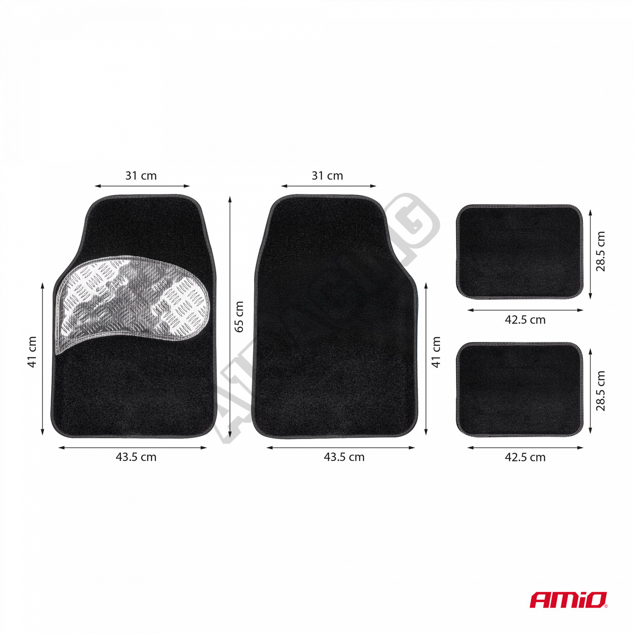 Univerzálna sada textilných kobercov TCM-06 je praktickým riešením pre širokú škálu modelov osobných automobilov. Vyrobené z odolného materiálu, odolného proti oderu a ľahko čistiteľného, zabezpečujú estetický vzhľad interiéru a účinnú ochranu podlahy vozidla.