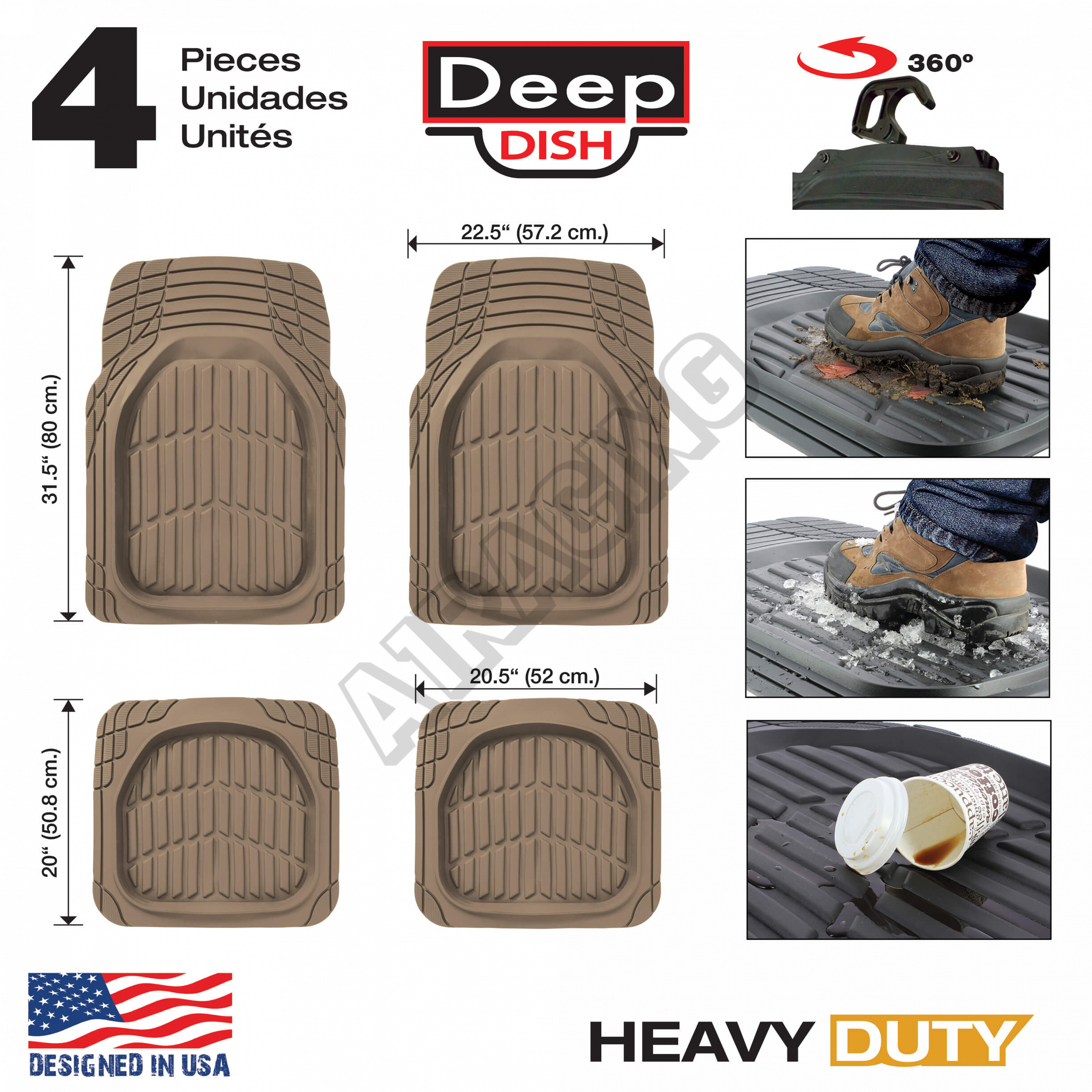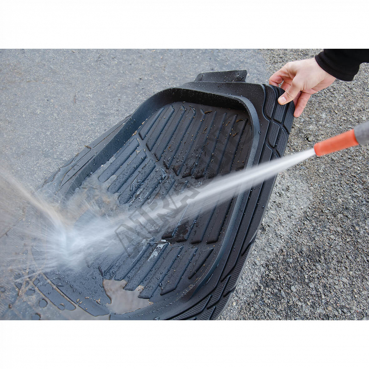 Masívne tvarované koberce nielen do zlého počasia v prémiovej kvalite určené hlavne pre americký trh, ktoré znesú aj veľmi drsné podmienky použitia. Rozmerovo sú použiteľné skoro pre všetky modely áut. Rozmery máme uvedené v galérii fotiek. Vďaka riaseniu po celom obvode koberca dokážete presne zastrihnúť váš požadovaný tvar. Vďaka hlbokému vyvýšenému okraju v koberci zamedzíte, aby voda alebo akékoľvek nečistoty sa dostali ďalej za hranu a zašpinili si tak interiér auta. Následne je jednoduché koberce vybrať a prípadnú vodu alebo nečistoty vyklepať alebo vyčistiť. Spodná časť vďaka výstupkom po celej ploche je nekĺzavá a koberce sa vám nebudú v aute posúvať. Na výber máte tieto autokoberce vo farbe čiernej, bežovej a šedej.