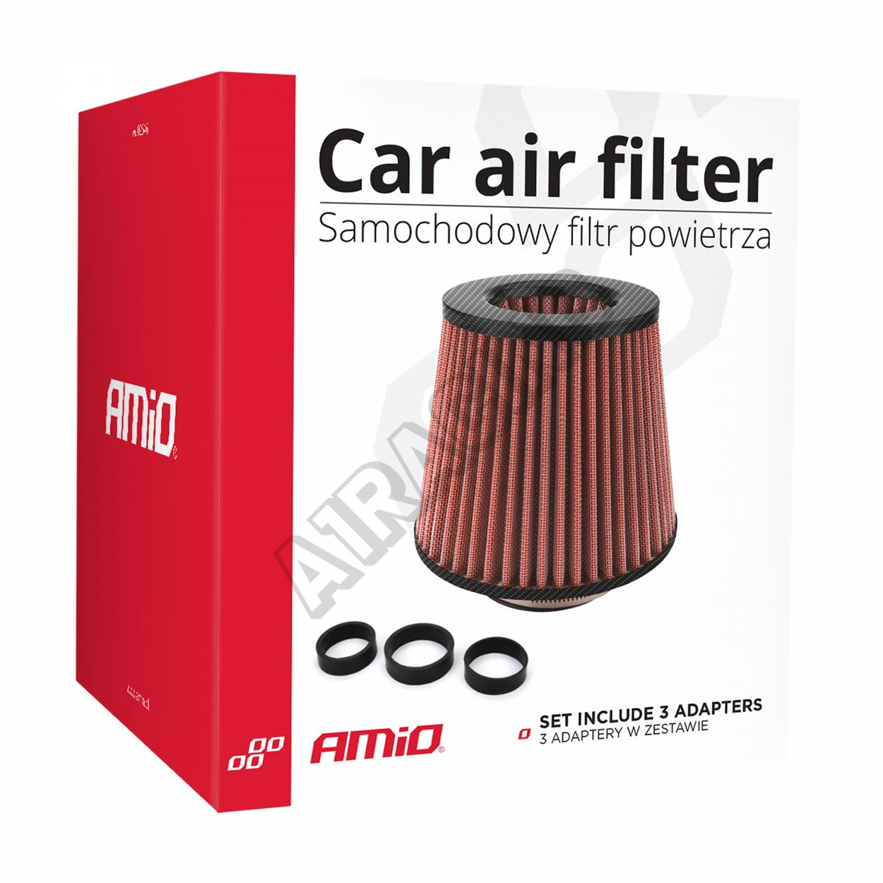 Filter je namontovaný na miesto pôvodného vzduchového filtra. V sade sa nachádzajú tri adaptéry a objímka, čo umožňuje montáž prakticky v každom modeli auta.