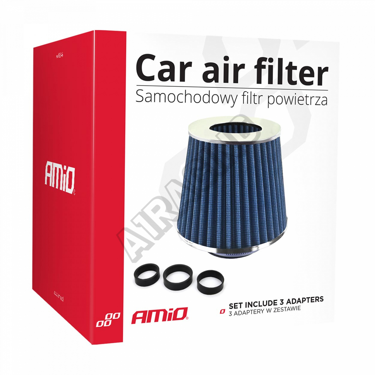 Filter je namontovaný na miesto pôvodného vzduchového filtra. V sade sa nachádzajú tri adaptéry a objímka, čo umožňuje montáž prakticky v každom modeli auta.