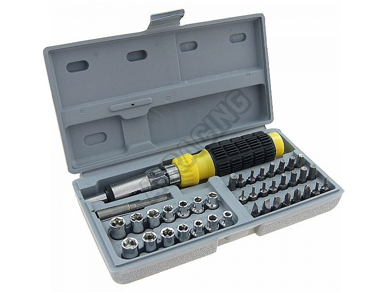 Zloženie sady: skrutkovač / račňa rozšírenie čiapky: 4-5 / 32 bity: ploché, torx, šesťhranné, krížové hruď
