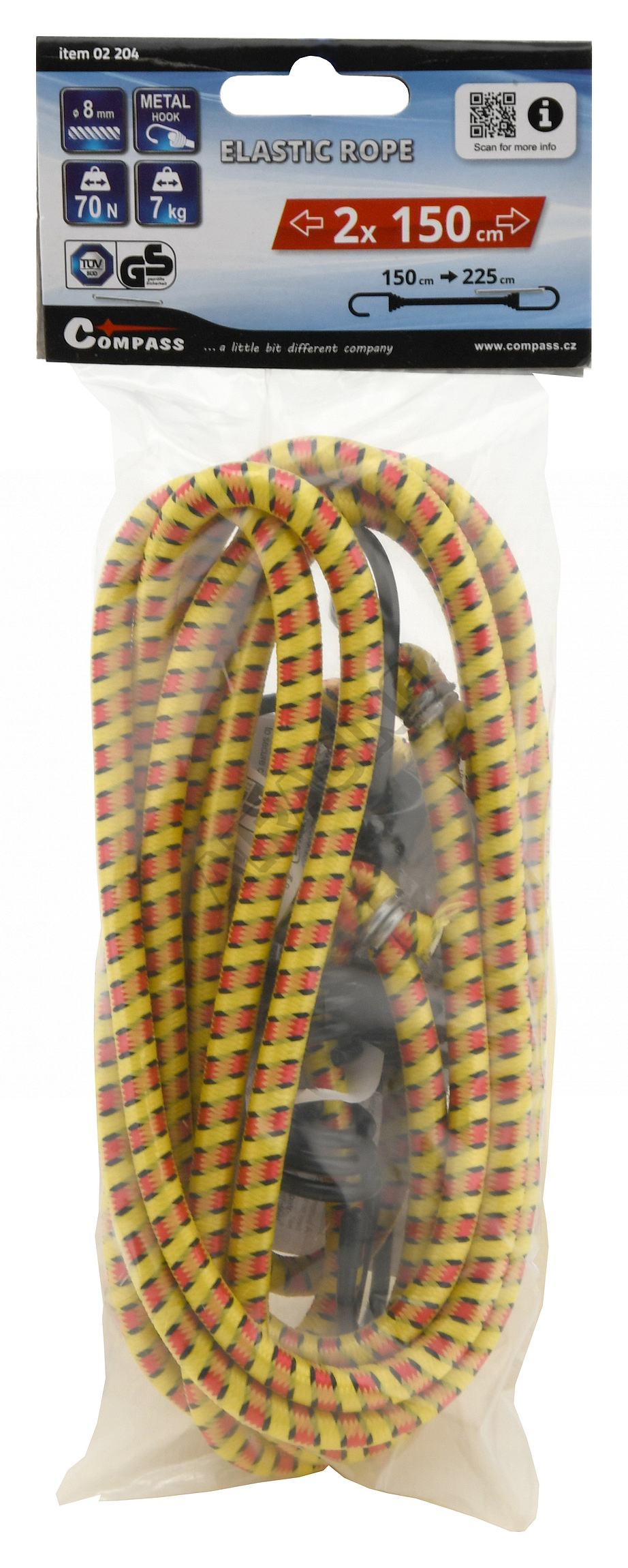 Upínač pružný TÜV/GS 2x150cm Kvalitné pružné upínače zakončené kovovými hákmi. Balen