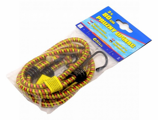 Upínač pružný TÜV/GS 2x80cm Kvalitné pružné upínače zakončené kovovými hákmi. Balenie