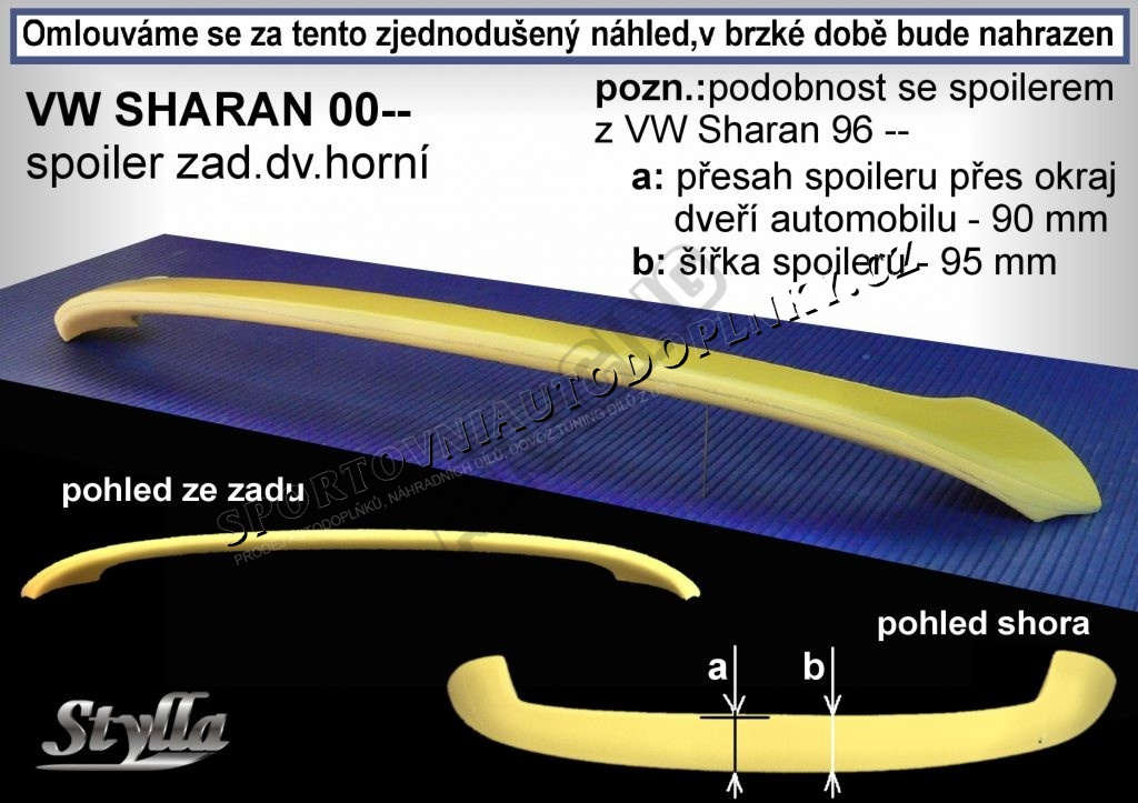 Volkswagen Sharan II 2000+ spoiler zadných dverí horný (EÚ homologácia)