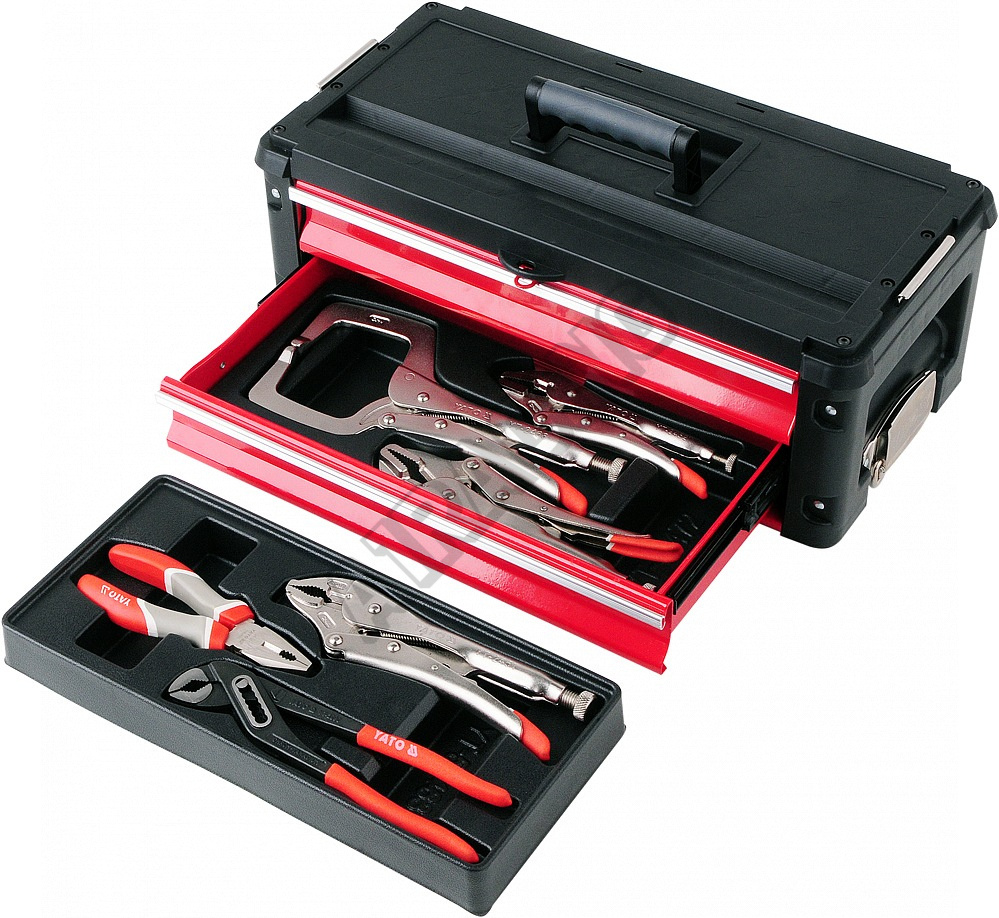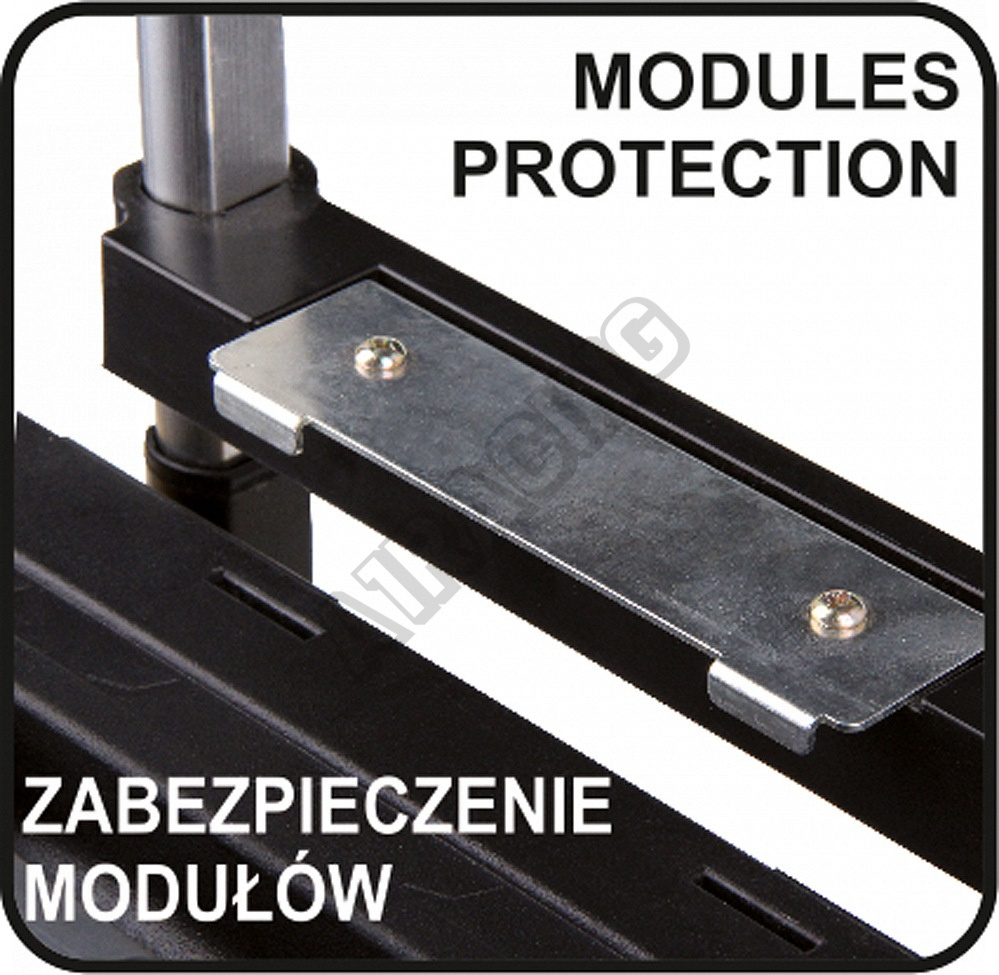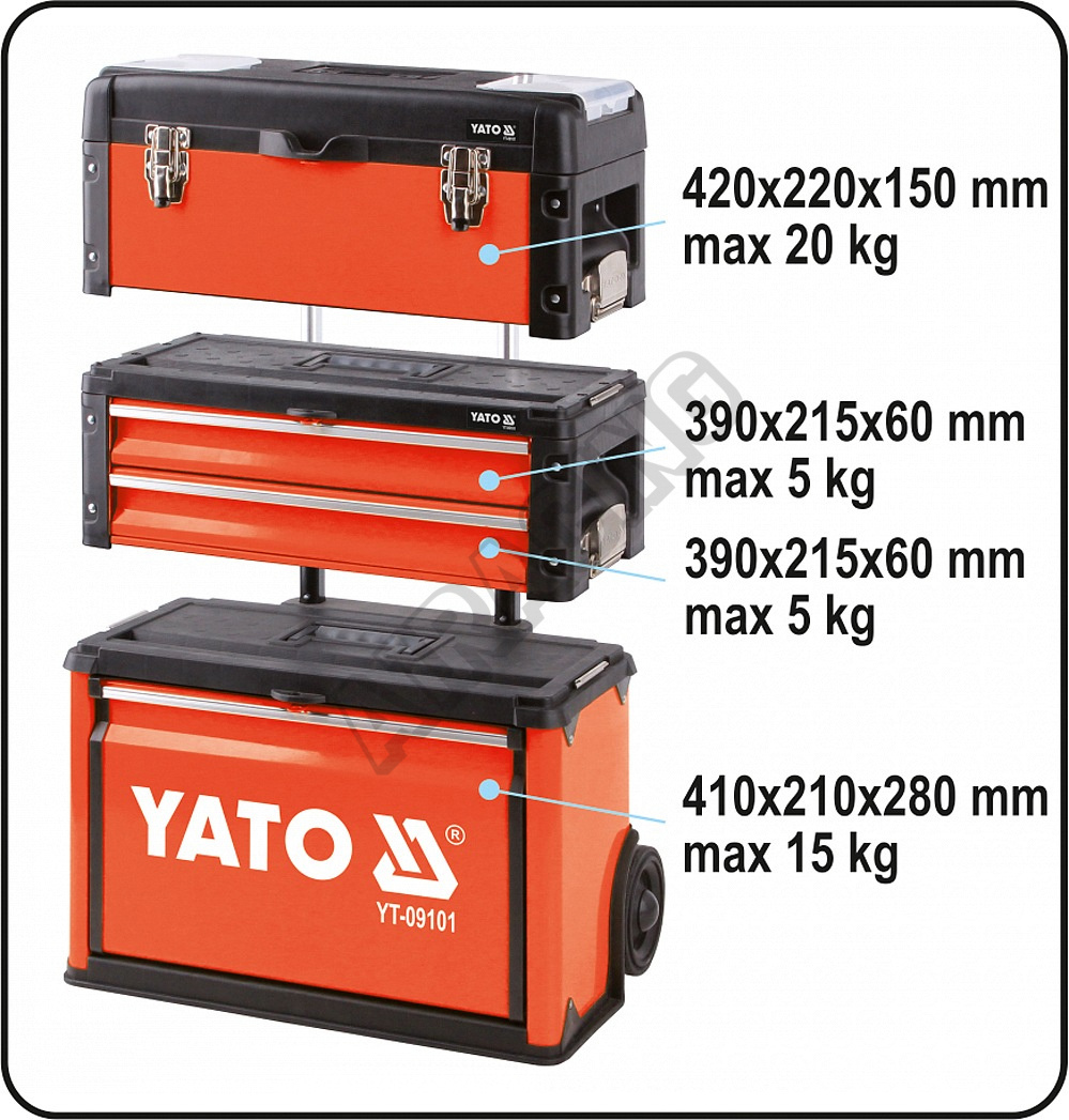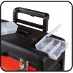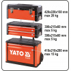 Horní modul s rozměry 420 x 220 x 150 mm s max. nosností 20 kg, je uzavratelná pomocí dvou kovových spon, které je možné uzamknout pomocí zámku (není součástí), horní modul je navíc opatřen dvěma plastovými kufříky na drobné součásti.