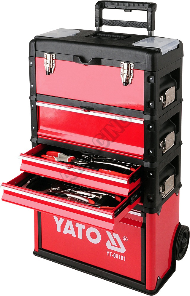 Modulární třídílná servisní skříň s vestavěnými kolečky a teleskopickou rukojetí, pro snadné přenáše