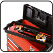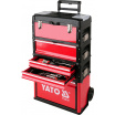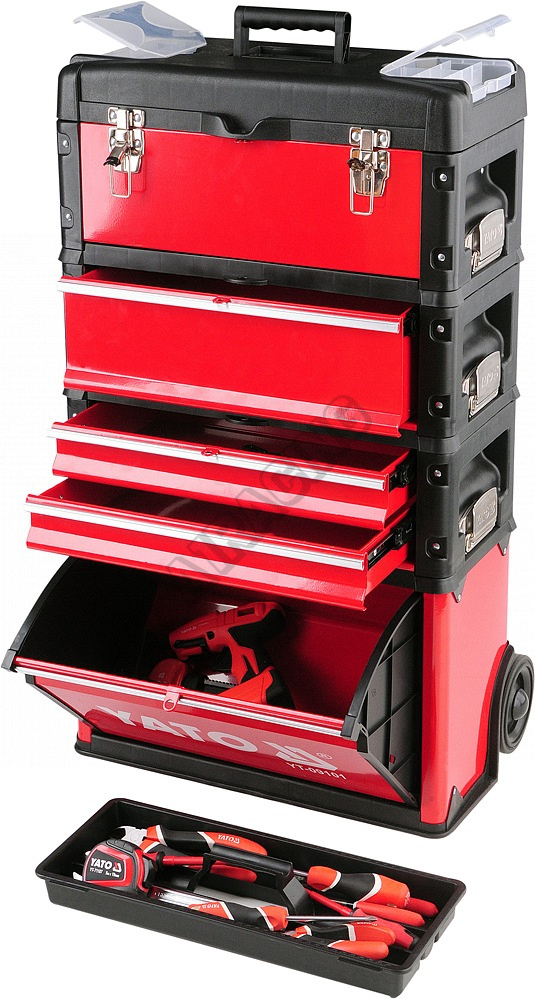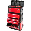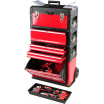 Modulární třídílná servisní skříň s vestavěnými kolečky a teleskopickou rukojetí, pro snadné přenášení.
