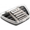 Jednotlivé nástroje v sadě, zhotoveny z materiálu GCr15 poskytující vysokou odolnost a efektivitu práce, jsou přehledně uloženy v plastovém kufříku.