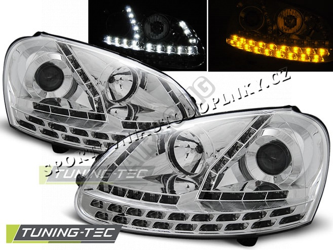 VW Golf 5 2003-08 Predné číre svetlá Daylight LED chrome (LPVWF8) cena za pár 2 ks, tyto světla mají