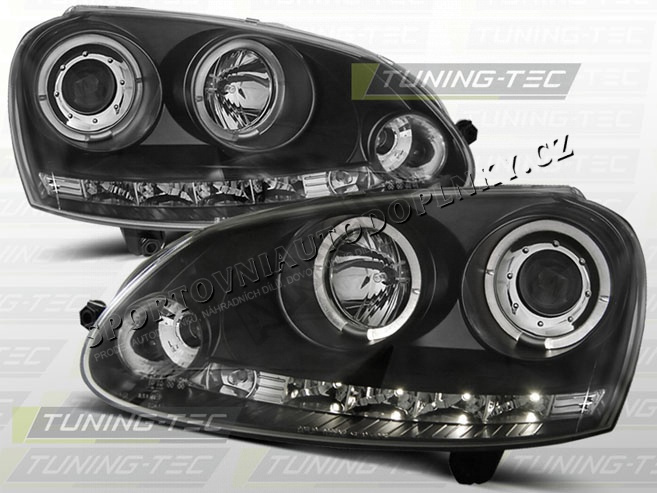 VW Golf V 2003-09 Predné číre svetlá Angel Eyes Black (LPVWB8) - cena za pár 2 ks, tyto světla mají