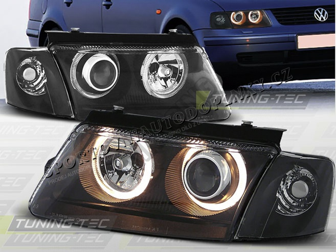 VW Passat B2 (3B) 1996-00 Predné číre svetlá Angel Eyes black (LPVW26) - cena za pár 2 ks, tyto svět