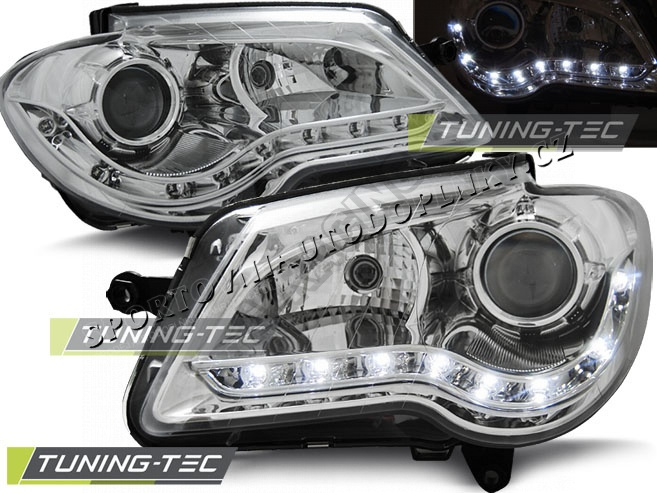 VW Touran 2006-10 Predné číre svetlá Daylight LED chrome (LPVWF4) cena za pár 2 ks, tyto světla mají